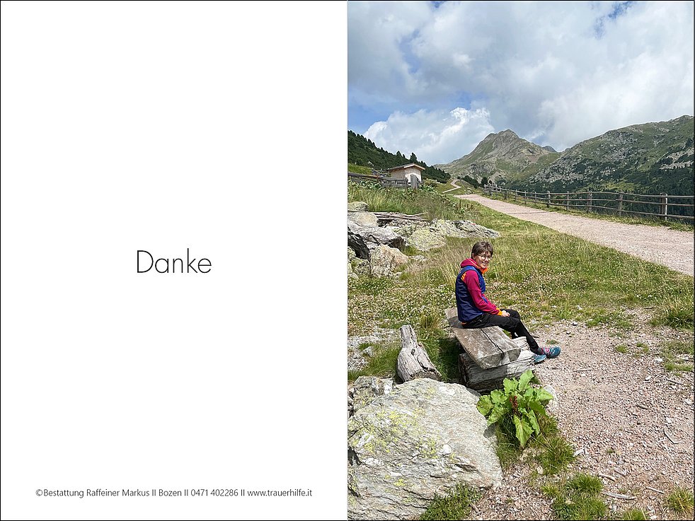Ein besonderer Dank gilt Dr. Bernardo Massimo sowie seinem sehr einfühlsamen Team auf der Palliativstation in Bozen.