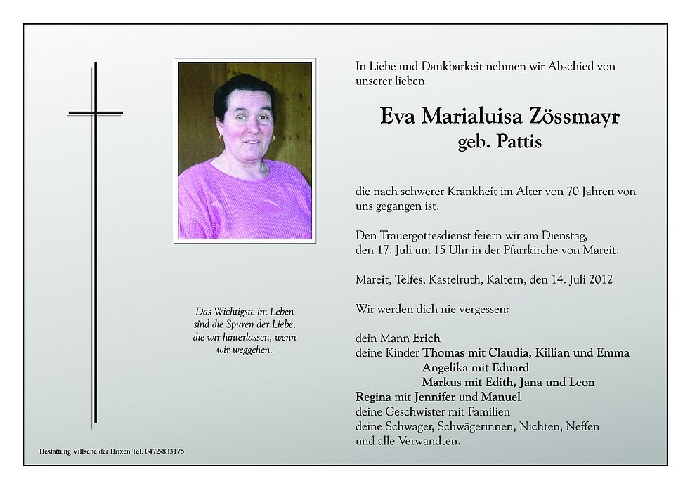 Den Trauergottesdienst feiern wir am Dienstag,