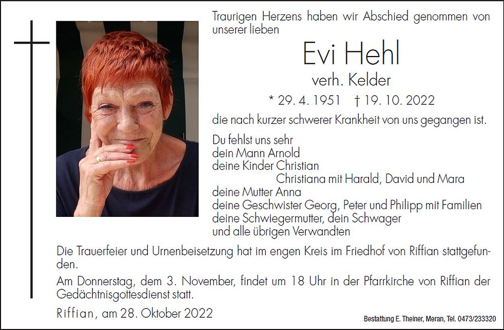 Gedächtnisgottesdienst: 03.11. - 18:00 Uhr Pfarrkirche Riffian