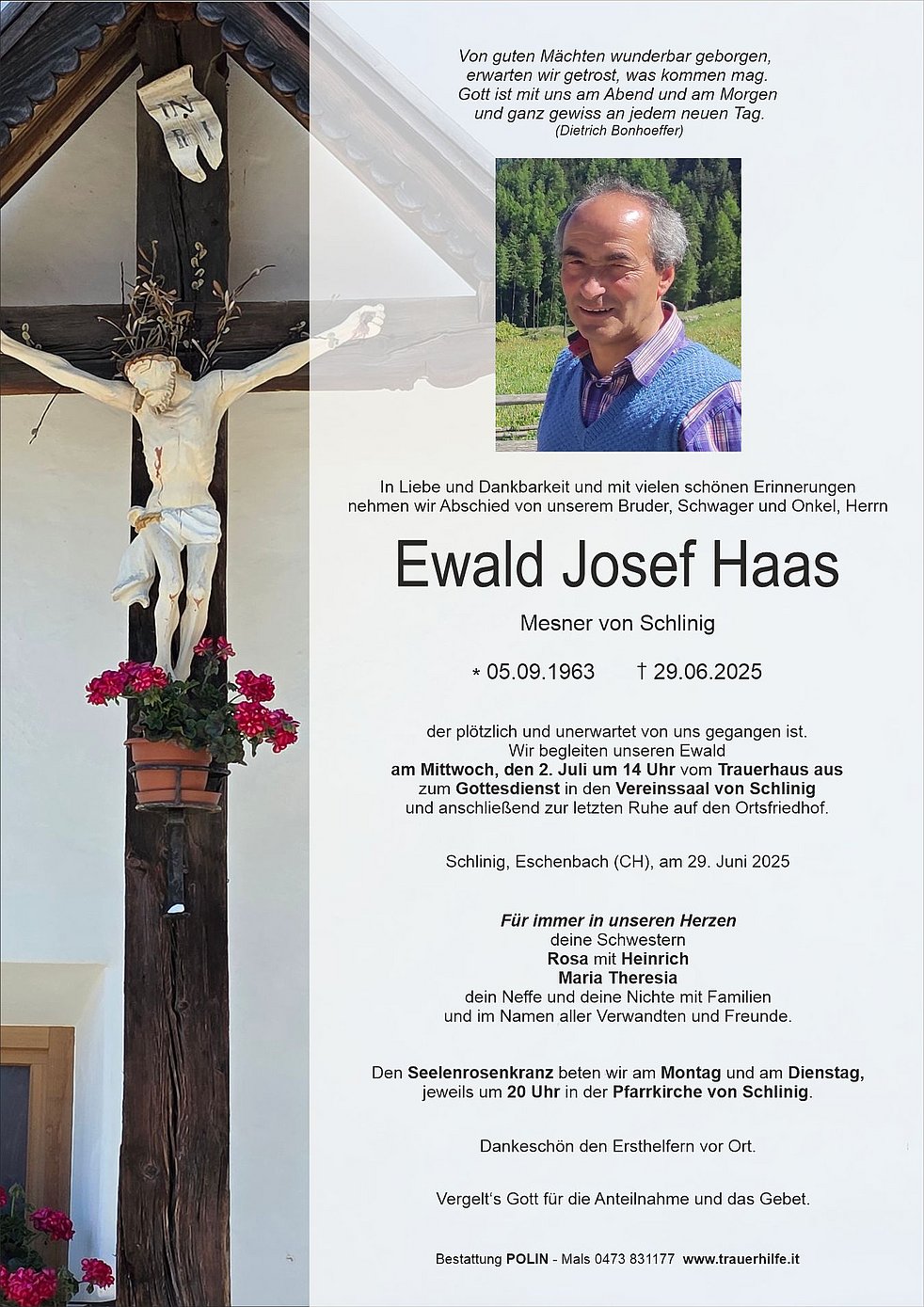 am Mittwoch, den 2. Juli um 14 Uhr vom Trauerhaus aus