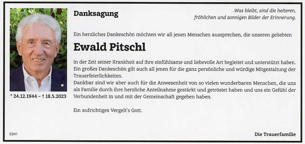 Vergelt´s Gott allen, die sich in den Stunden des Abschieds mit uns verbunden fühlen und auf vielfältige Weise ihre Anteilnahme zum Ausdruck bringen.