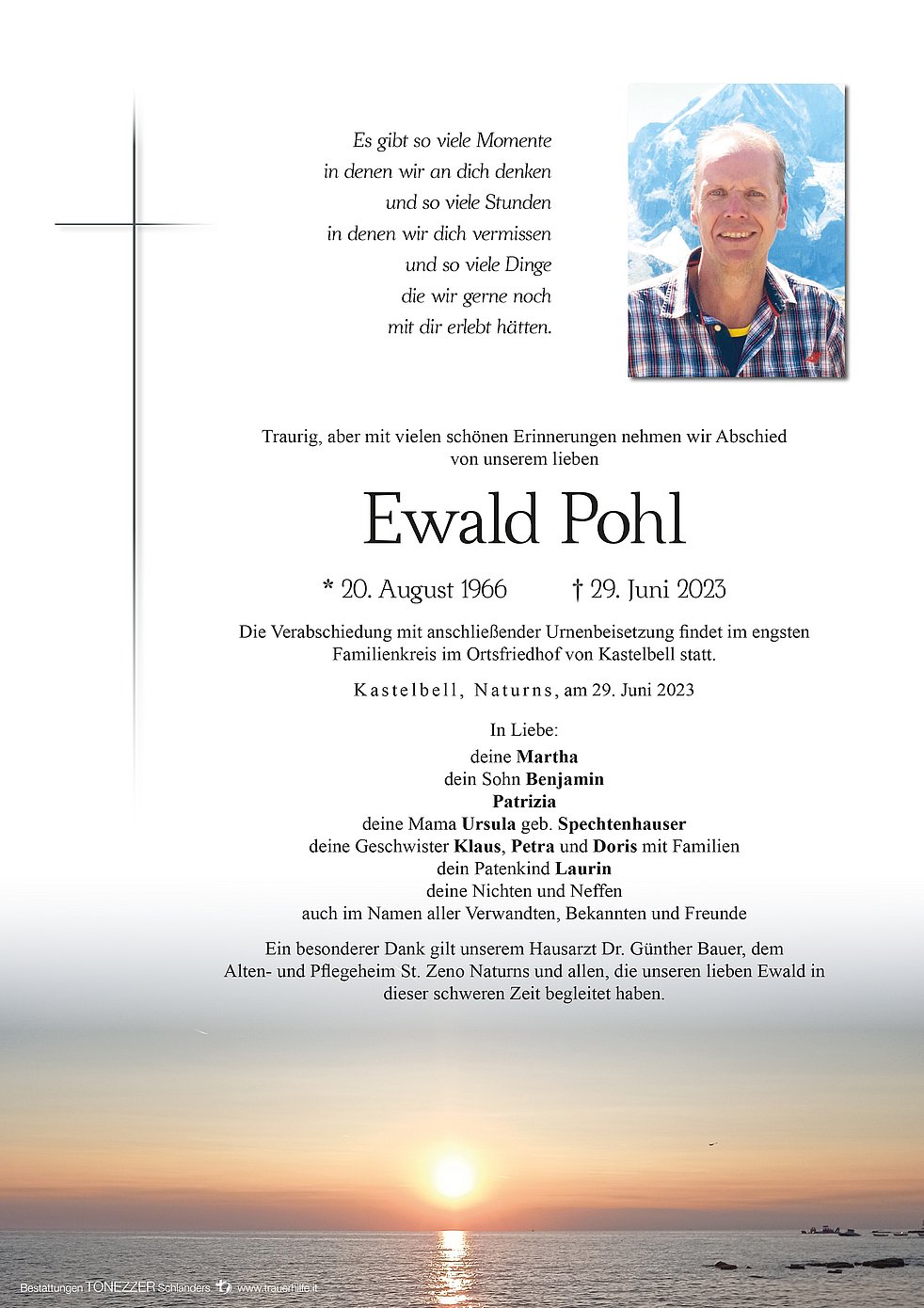 die unseren lieben Ewald in dieser schweren Zeit begleitet haben.