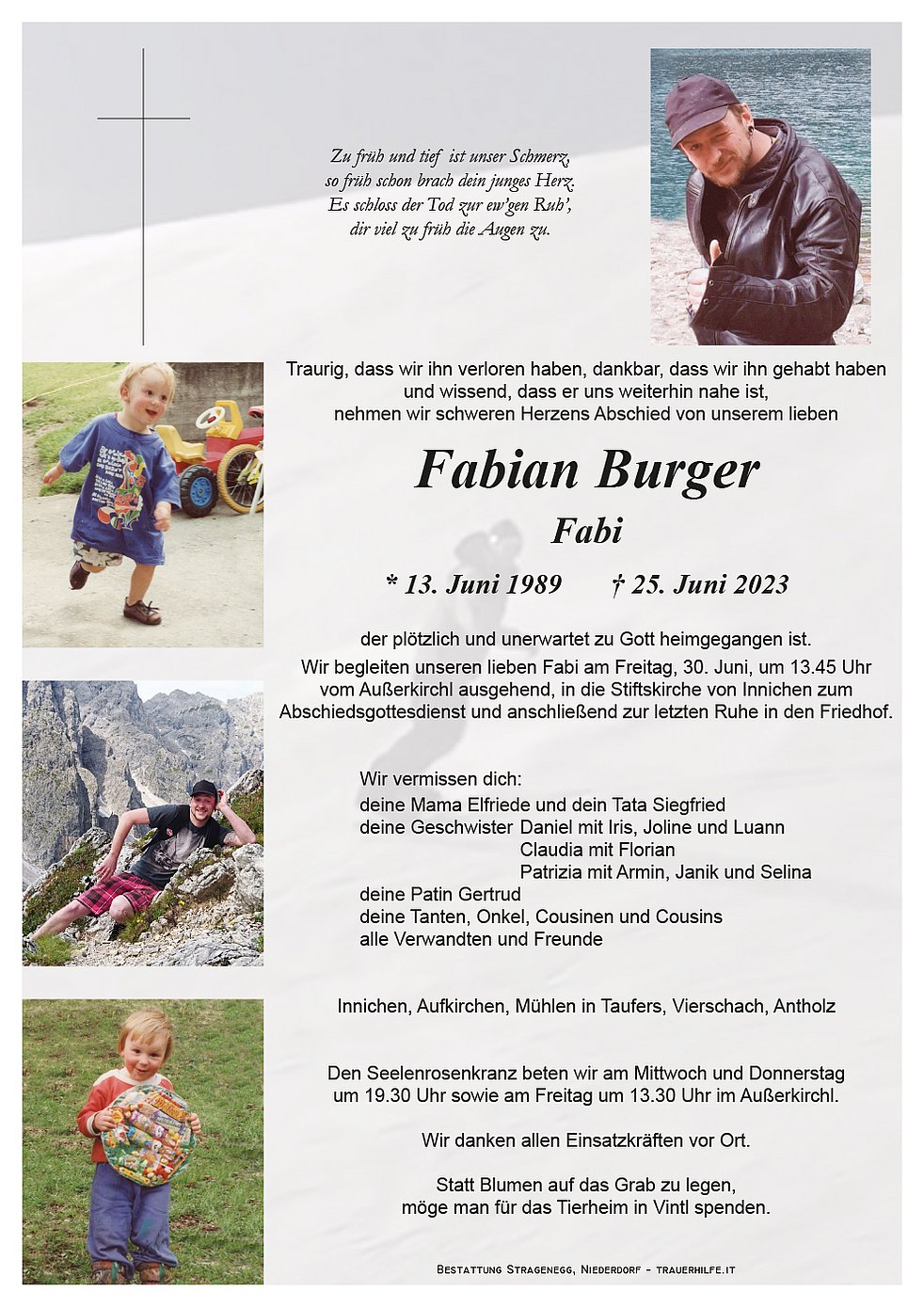 Fabi, hom ins erst vor kurzen kennengelernt in do Schule. Du worsch soo a lustiger und crazy. Hom soffl an spass kop. I beholt die in guter und schöner Erinnerung. I werd di nie vogessn. Flieg hoch