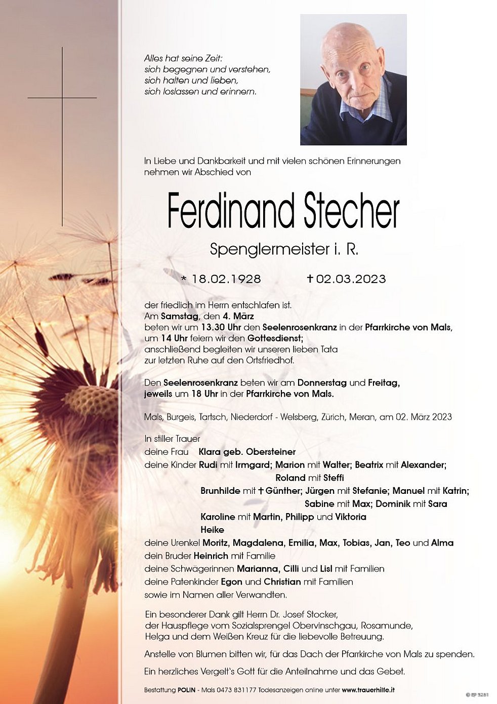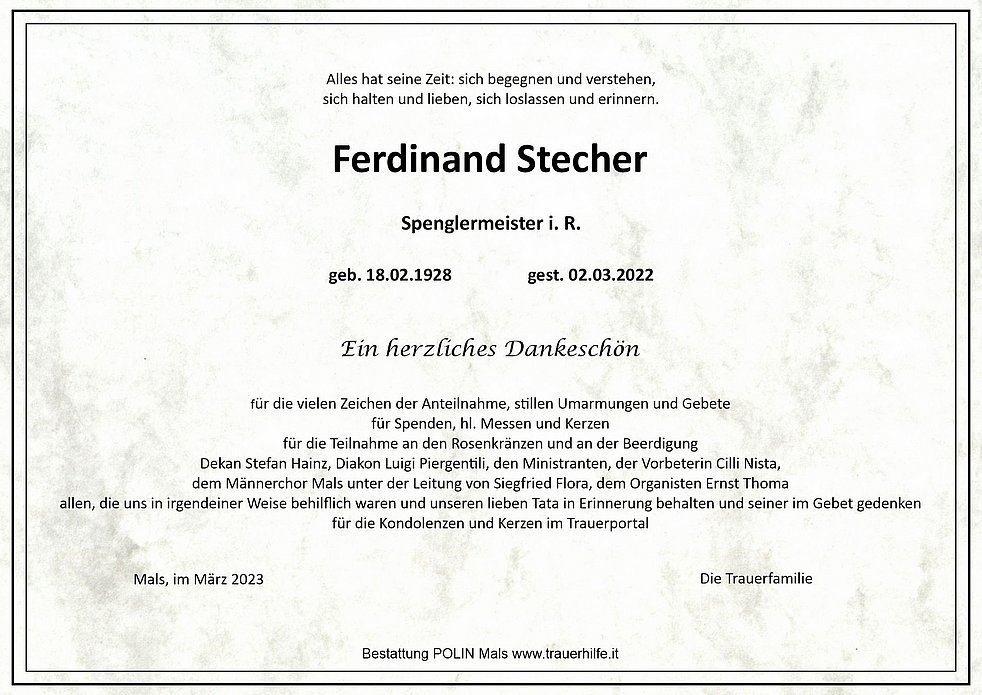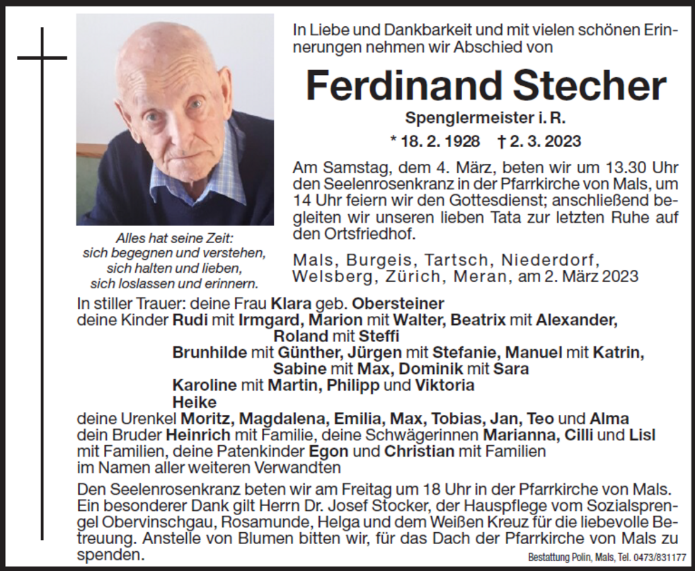 Anstelle von Blumen bitten wir, für das Dach der Pfarrkirche von Mals zu spenden.