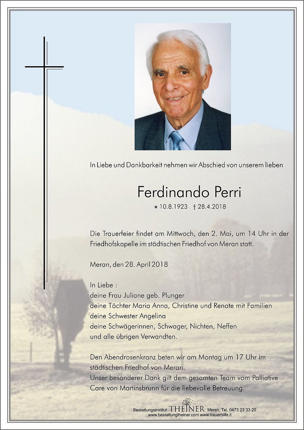 Ne danno il triste annuncio la moglie Juliane, le figlie Maria Anna con Luciano e Alessia, Christine con Peter, Lorenz e Lara, Renate con Jörg, Luca e Vincent, la sorella Angelina, la nipote Rita con Paolo, Francesco e Dimitri, le cognate, i cognati e parenti tutti.