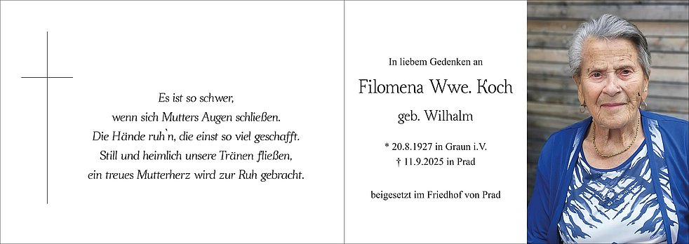 Filomena Wwe. Koch geb. Wilhalm