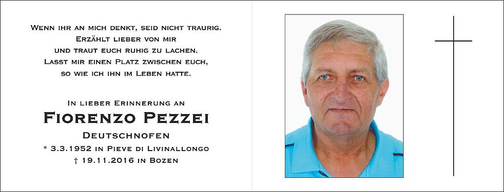 Begräbnisgottesdienst: 25.11. - 14:30 Uhr Pfarrkirche von Deutschnofen