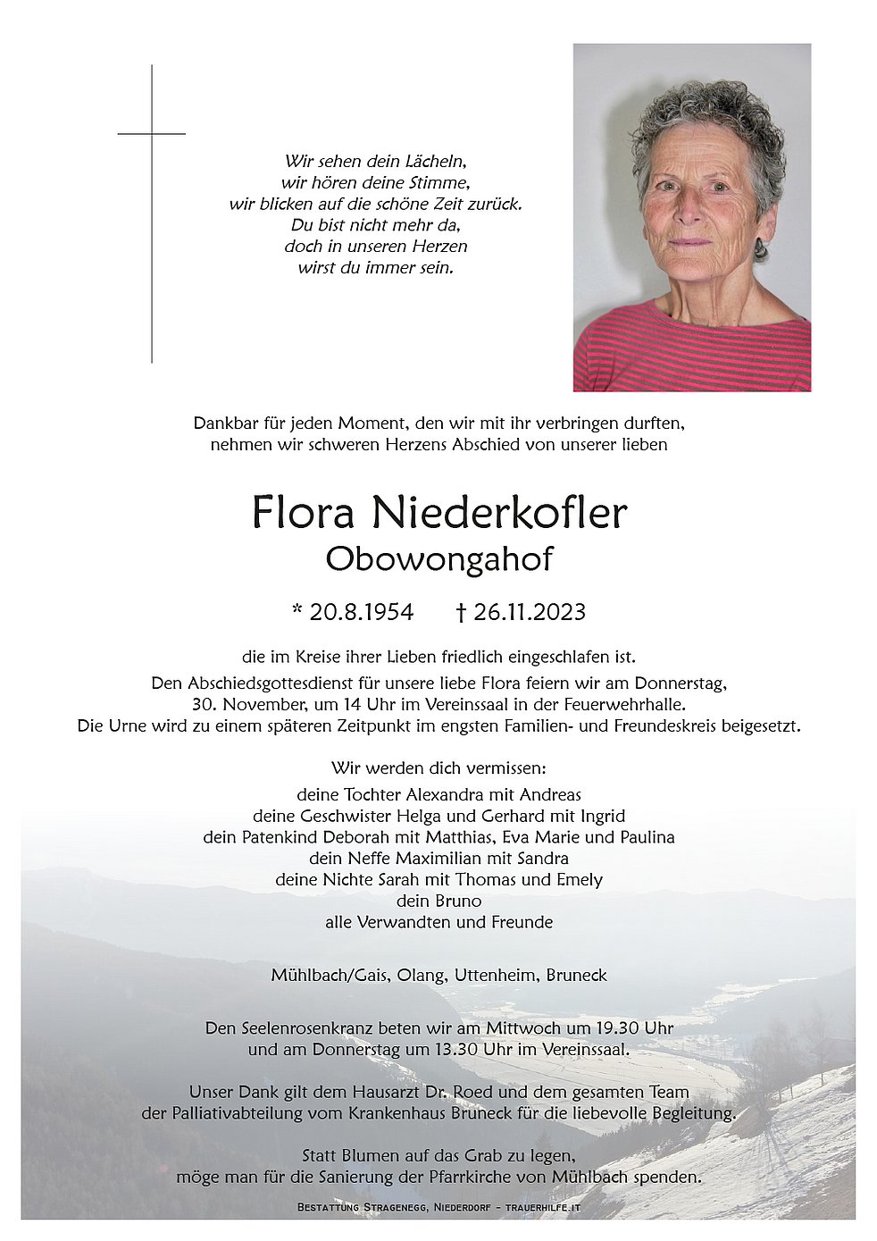 Herzliches Beileid den Angehörigen und liebe Flora gute Reise 🙏