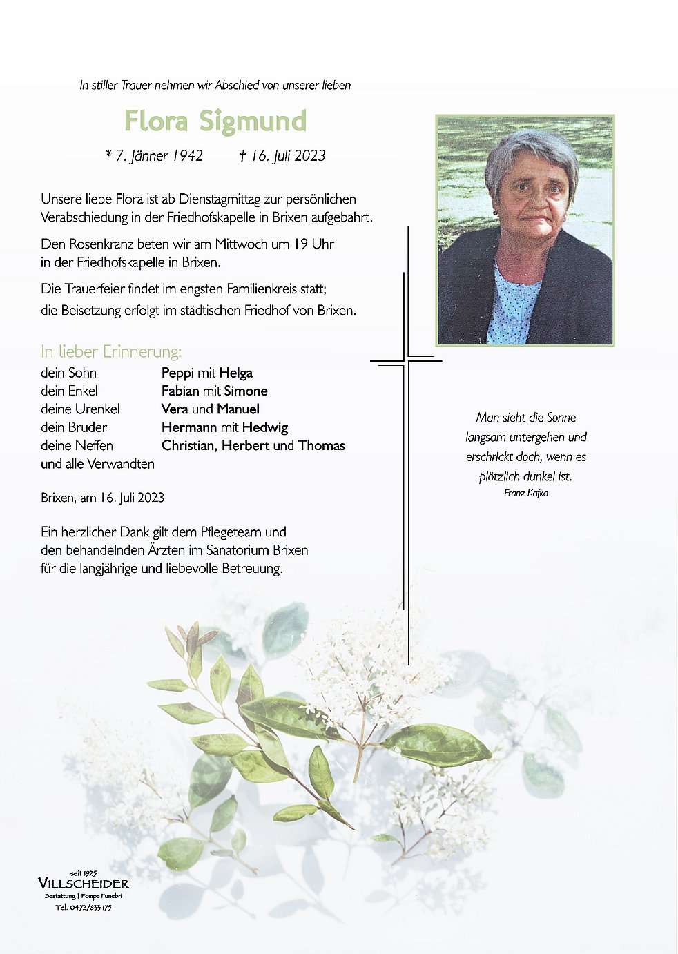 Gerne erinnere ich mich zurück an die Zeit, als du bei uns Köchin warst. Du warst immer so nett zu mir. Ruhe in Frieden liebe Flora.