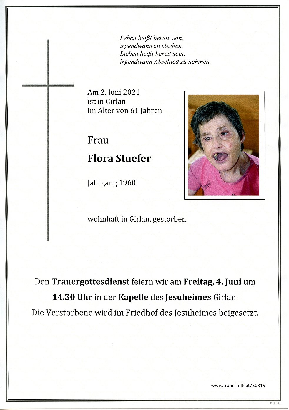 Begräbnisgottesdienst: 04.06. - 14:30 Uhr Kapelle im Jesuheim Girlan