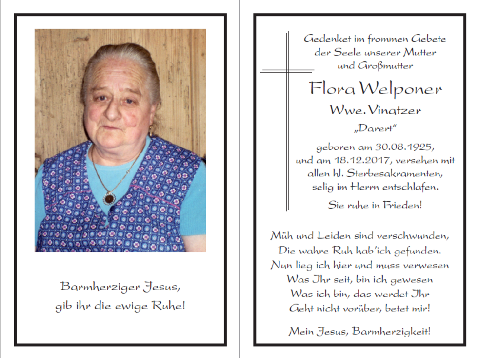 Flora Welponer Wwe. Vinatzer