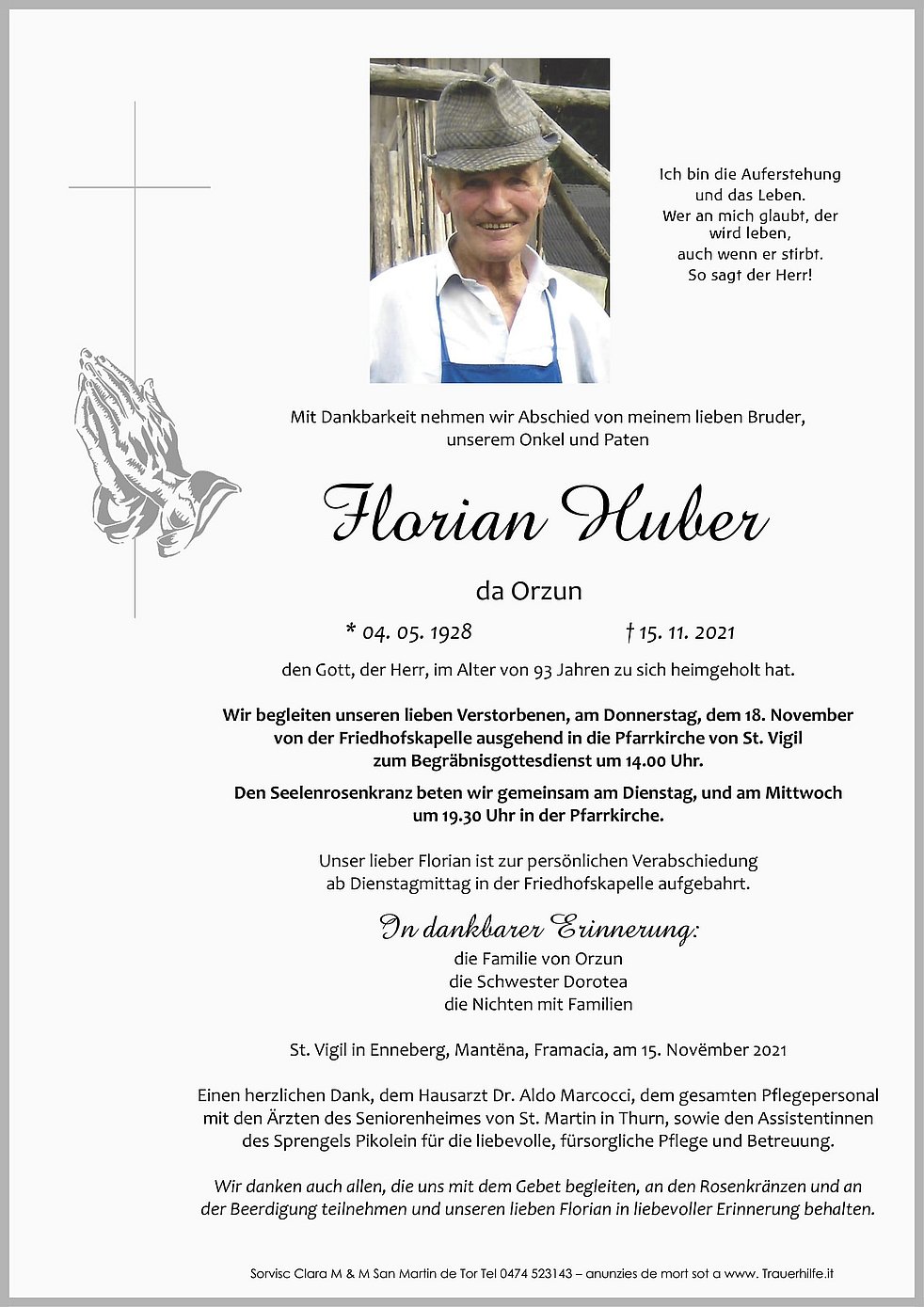Wir danken auch allen, die uns mit dem Gebet begleiten, an den Rosenkränzen und an der Beerdigung teilnehmen und unseren lieben Florian in liebevoller Erinnerung behalten.