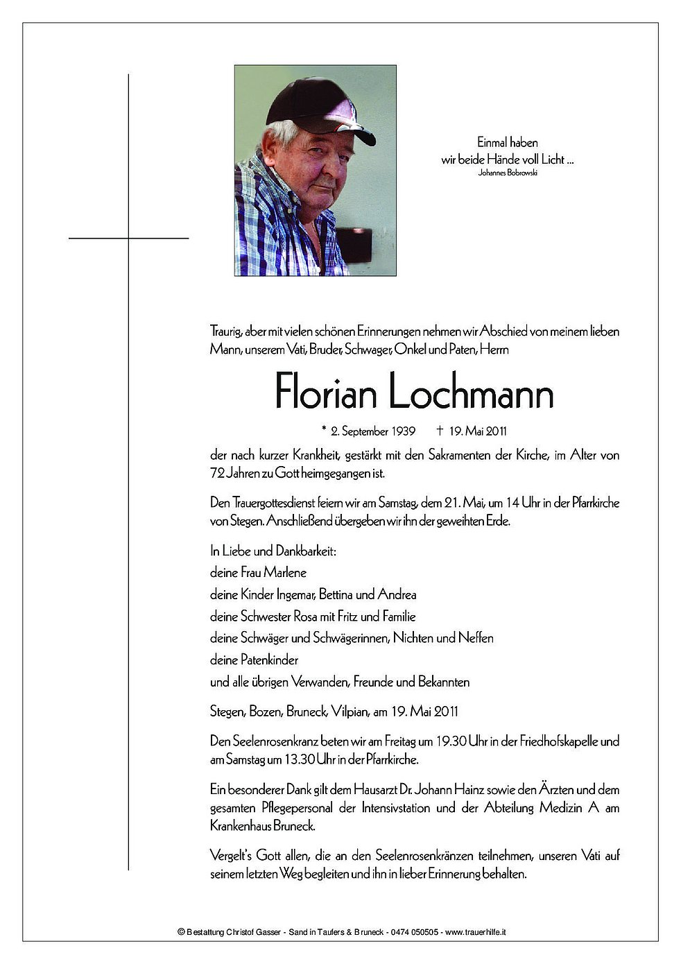 Den Trauergottesdienst feiern wir am Samstag, dem 21. Mai, um 14 Uhr in der Pfarrkirche von Stegen. Anschließend übergeben wir ihn der geweihten Erde.