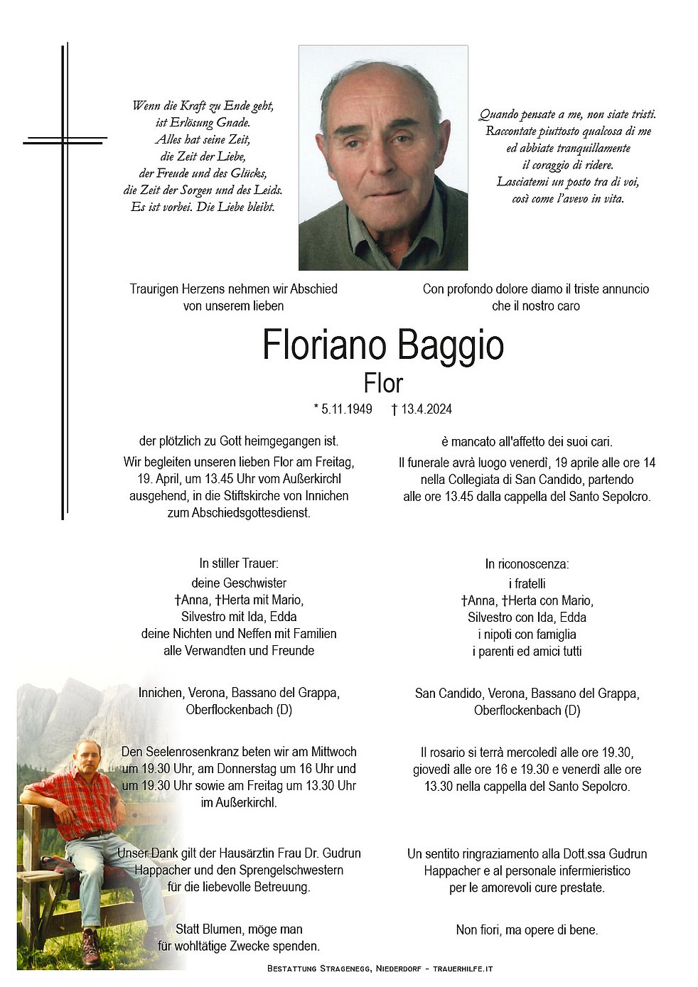 Trauerfeier: 19.04. - 14:00 Uhr Innichen