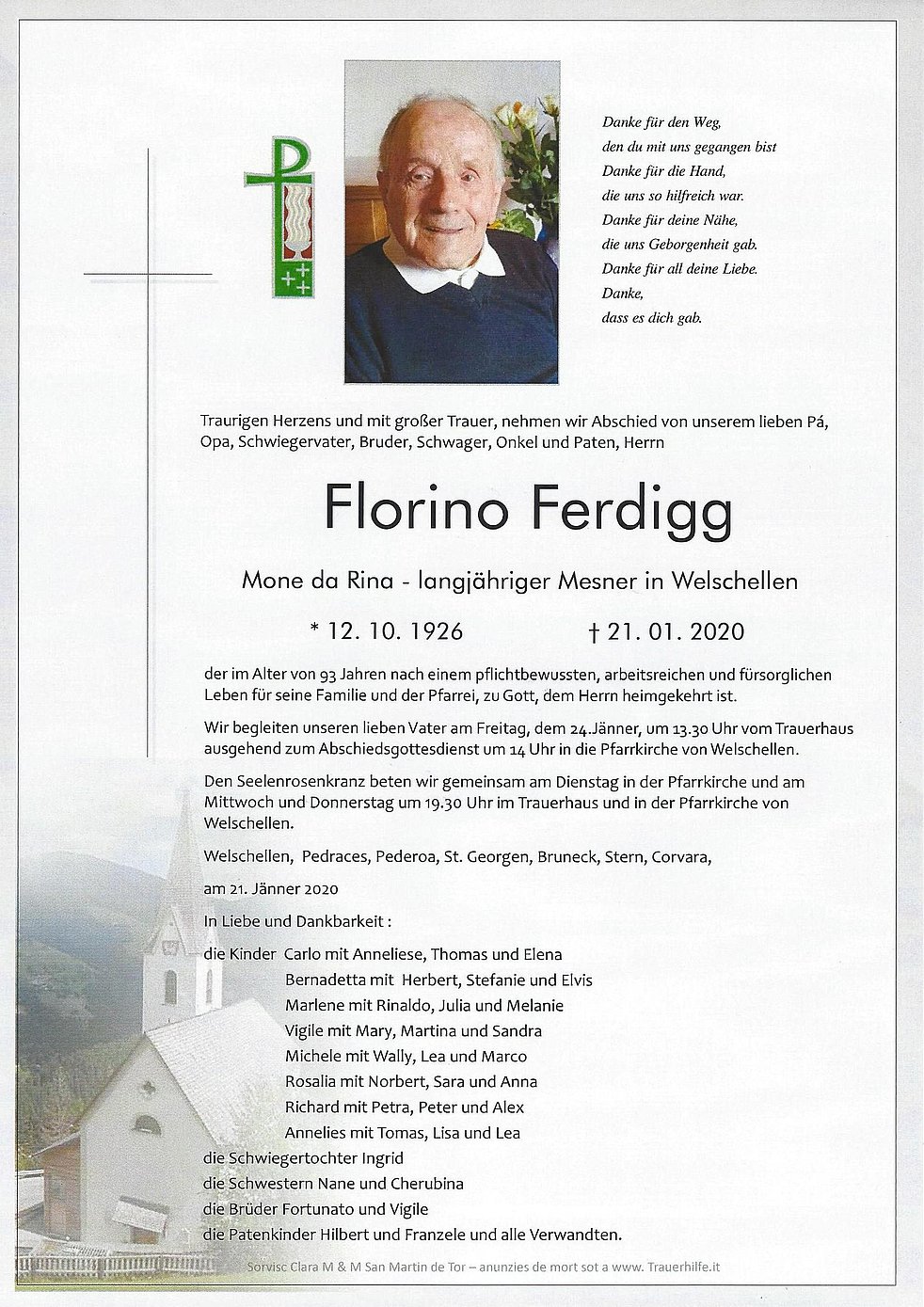 der im Alter von 93 Jahren nach einem pflichtbewussten, arbeitsreichen und fürsorglichen Leben für seine Familie und der Pfarrei, zu Gott, dem Herrn heimgekehrt ist.