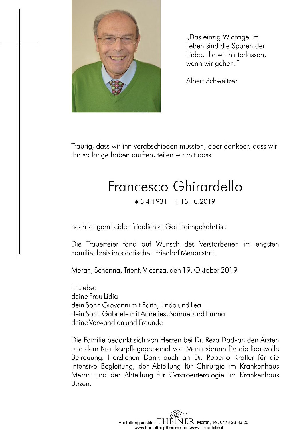Die Familie bedankt sich von Herzen bei Dr. Reza Dadvar, den Ärzten und dem Krankenpflegepersonal von Martinsbrunn für die liebevolle Betreuung. Herzlichen Dank auch an Dr. Roberto Kratter für die intensive Begleitung, der Abteilung für Chirurgie im Krankenhaus Meran und der Abteilung für Gastroenterologie im Krankenhaus Bozen.