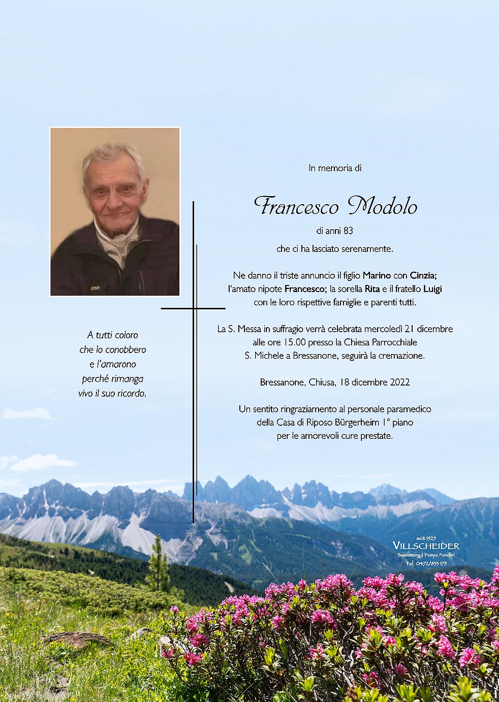 Trauerfeier: 21.12. - 15:00 Uhr Brixen; Bressanone