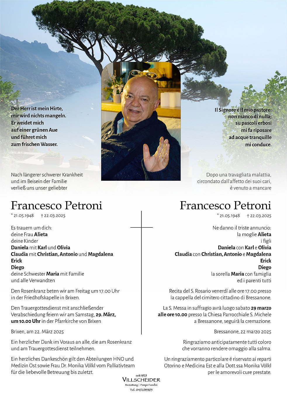 Begräbnisgottesdienst: 29.03. - 10:00 Uhr Brixen | Bressanone