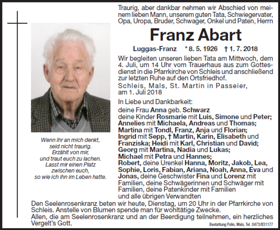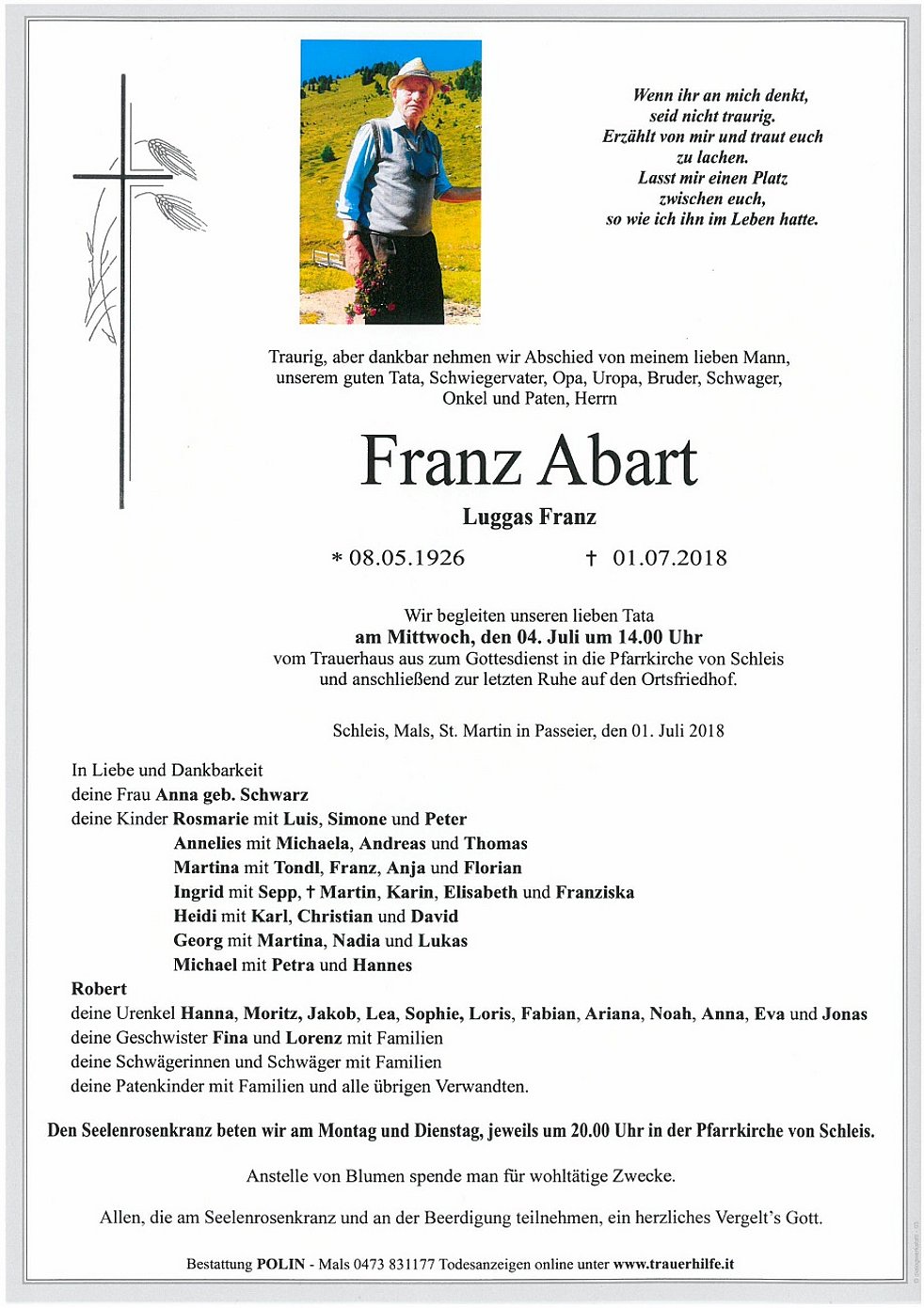 unserem guten Tata, Schwiegervater, Opa, Uropa, Bruder, Schwager,