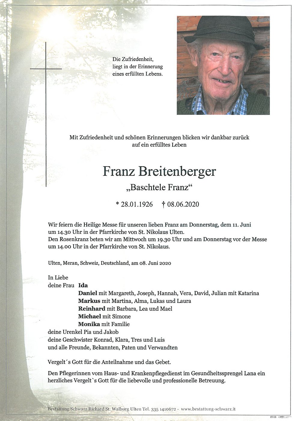 Trauerfeier: 11.06. - 14:00 Uhr Pfarrkirche St. Nikolaus