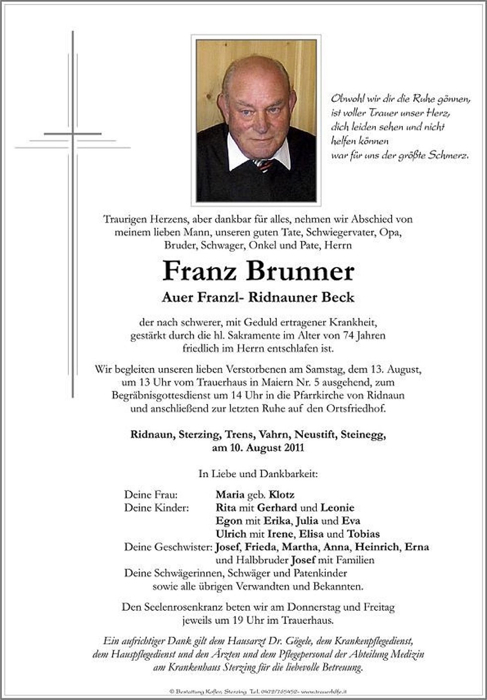 Ein aufrichtiger Dank gilt dem Hausarzt Dr. Gögele, dem Krankenpflegedienst,