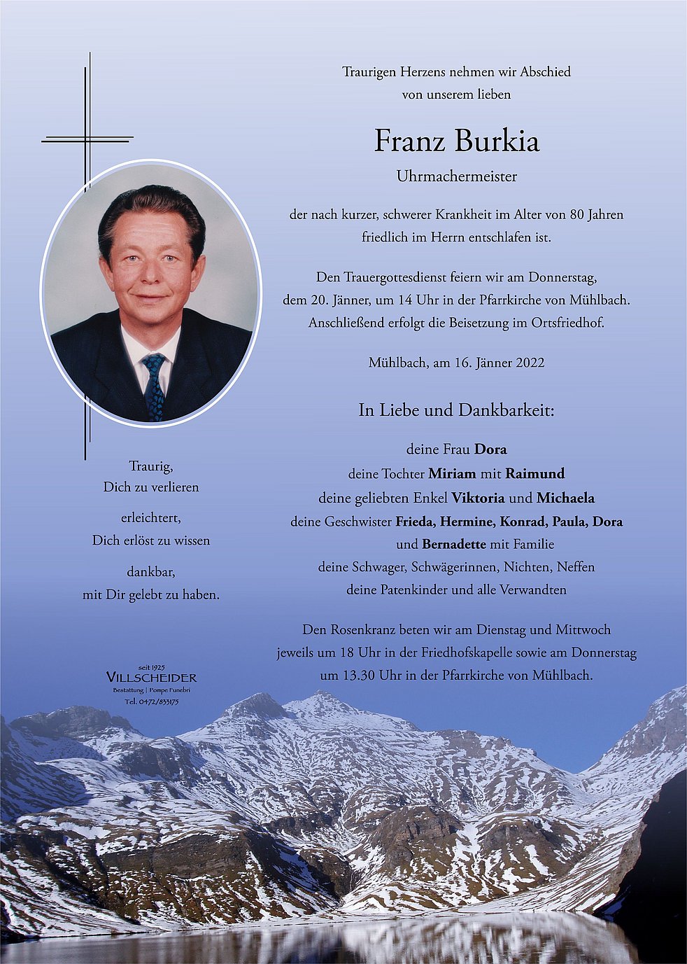 Mein Aufrichtiges Beileid mòge Gott Euch in der schwern Zeit viel Kraft gebm.Werde Franz immer in guter Erinnerung behaltn.