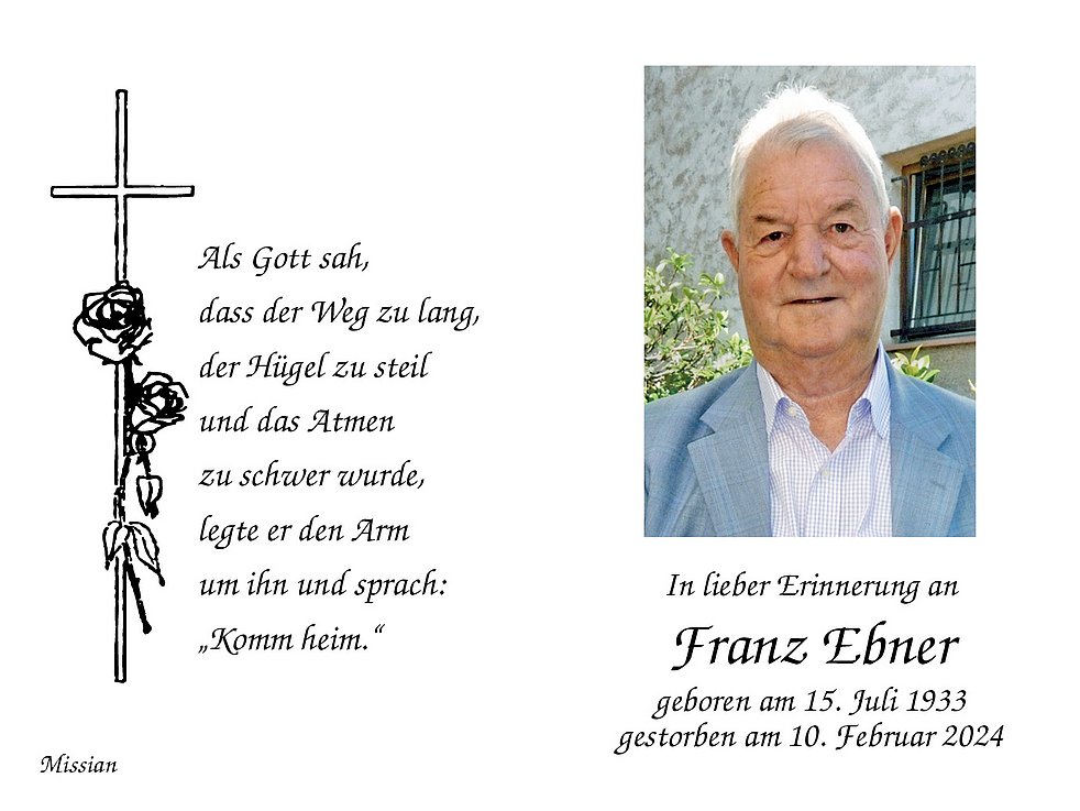 Wir danken dem gesamten Team der Beobachtungsstation des Krankenhauses Bozen ganz besonders den Nichten Anita und Roswitha und dem Neffen Thomas für die liebevolle Betreuung. Allen, die am Rosenkranz und an der Beerdigung teilnehmen, im Voraus ein herzliches Vergelt`s Gott.
