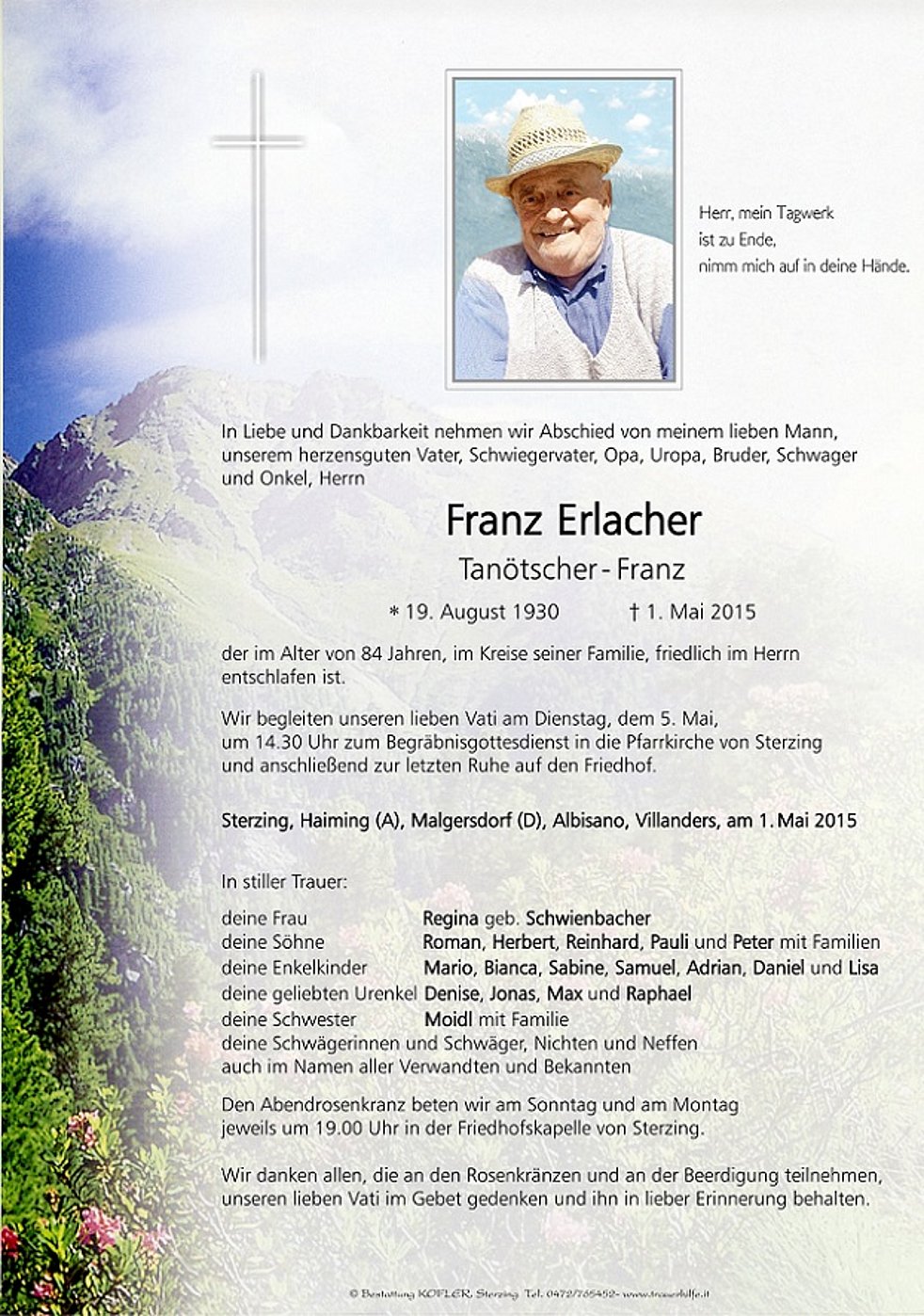 Wir danken allen, die an den Rosenkränzen und an der Beerdigung teilnehmen,