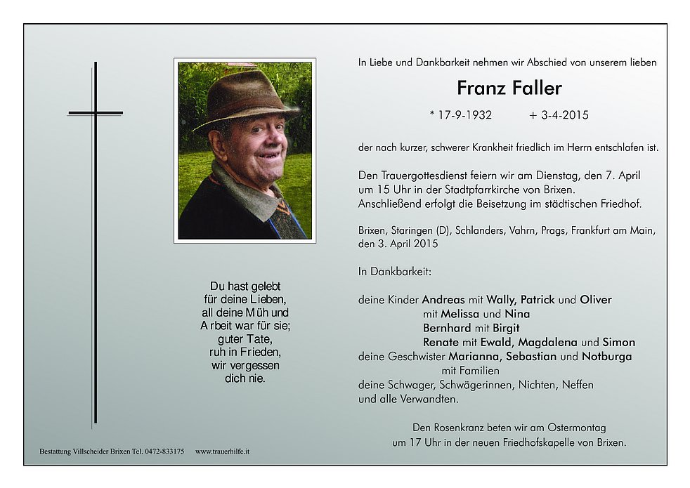 Den Trauergottesdienst feiern wir am Dienstag, den 7. April