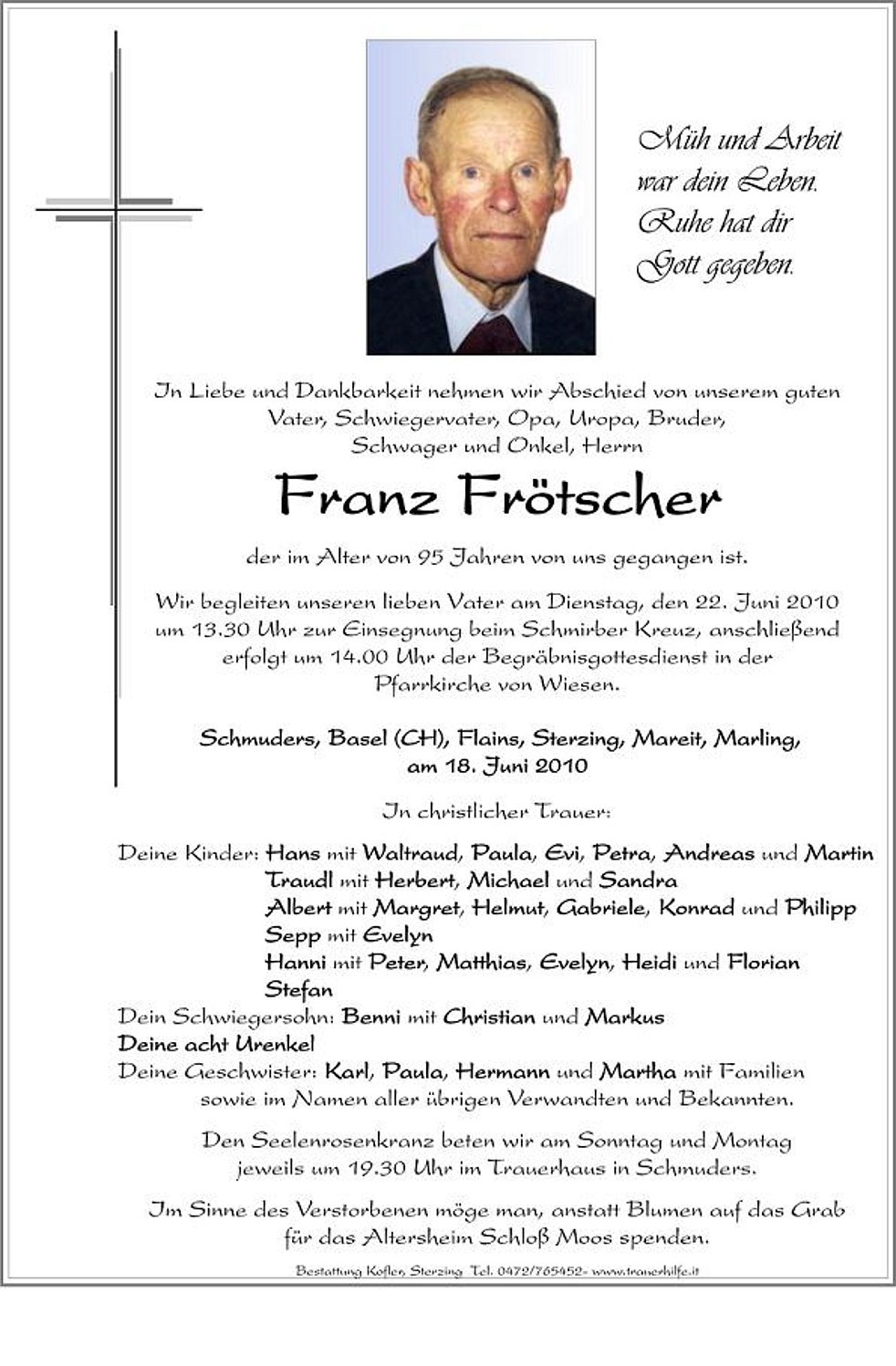 Wir begleiten unseren lieben Vater am Dienstag, den 22. Juni 2010 um 13.30 Uhr