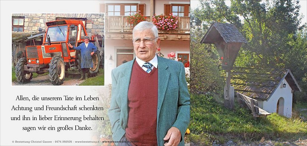 Unser lieber Vati ist ab Freitagmittag in der neuen Friedhofskapelle von Pfalzen aufgebahrt.