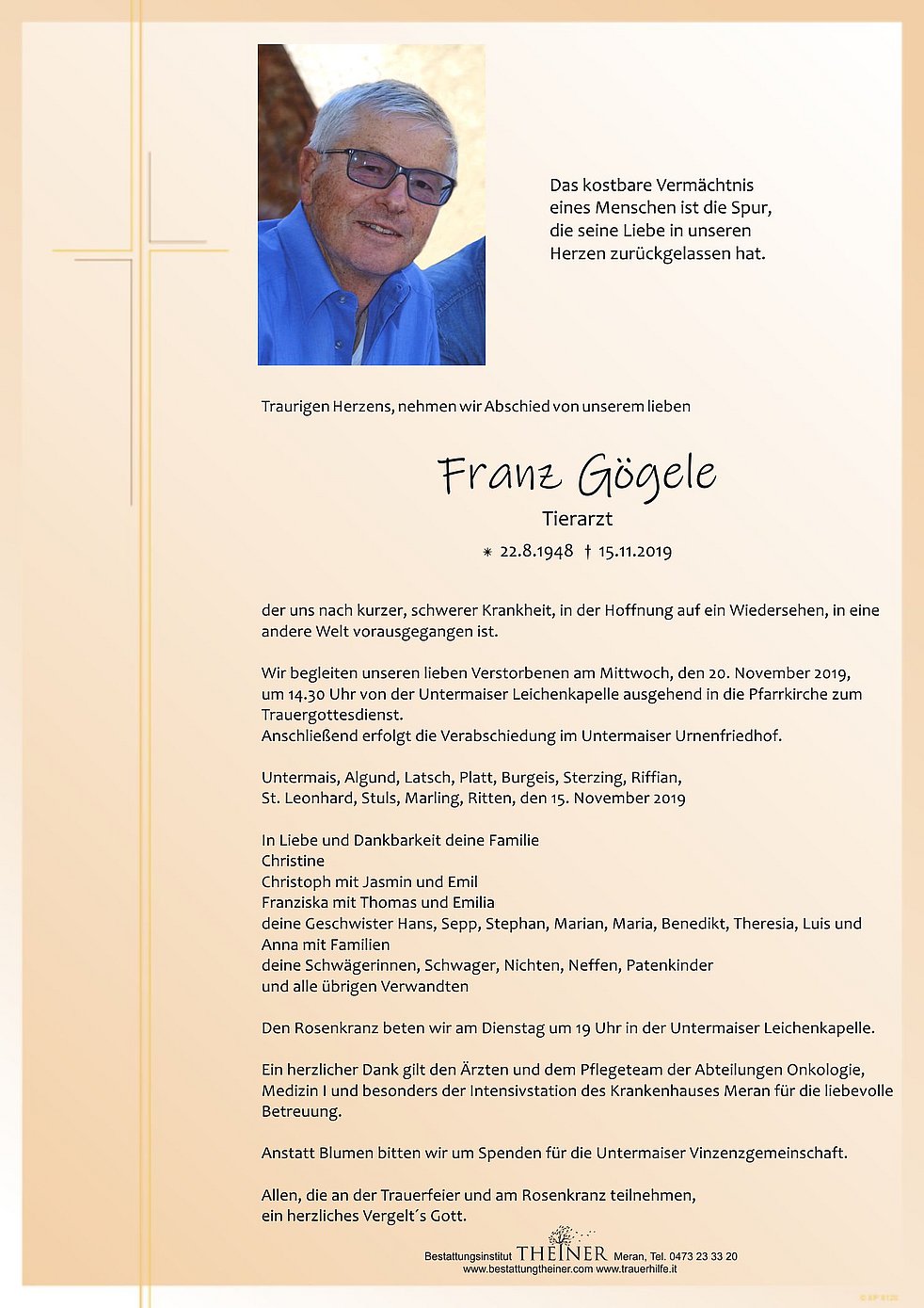 Wir begleiten unseren lieben Verstorbenen am Mittwoch, den 20. November 2019, um 14.30 Uhr von der Untermaiser Leichenkapelle ausgehend in die Pfarrkirche zum Trauergottesdienst.