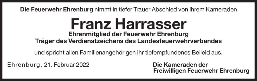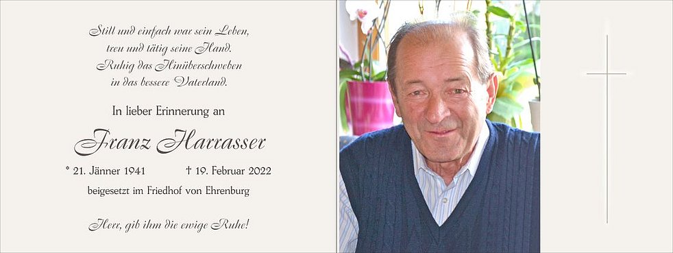 Den Abschiedsgottesdienst feiern wir am Dienstag, 22. Februar, um 14.30 Uhr in der Pfarrkirche von Ehrenburg. Anschließend übergeben wir ihn der geweihten Erde.