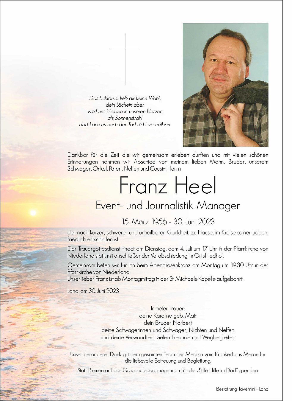 Ruhe in Frieden, lieber Franz! Du warst in den LBA Zeiten in den 70ern in Meran ein toller Schulkollege.