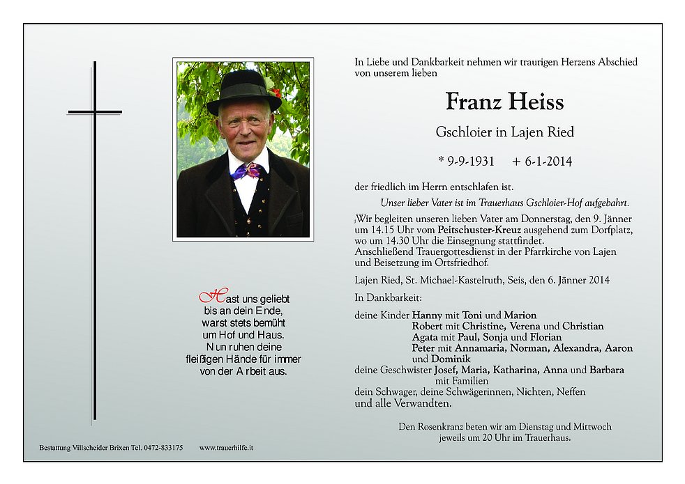Unser lieber Vater ist im Trauerhaus Gschloier-Hof aufgebahrt.