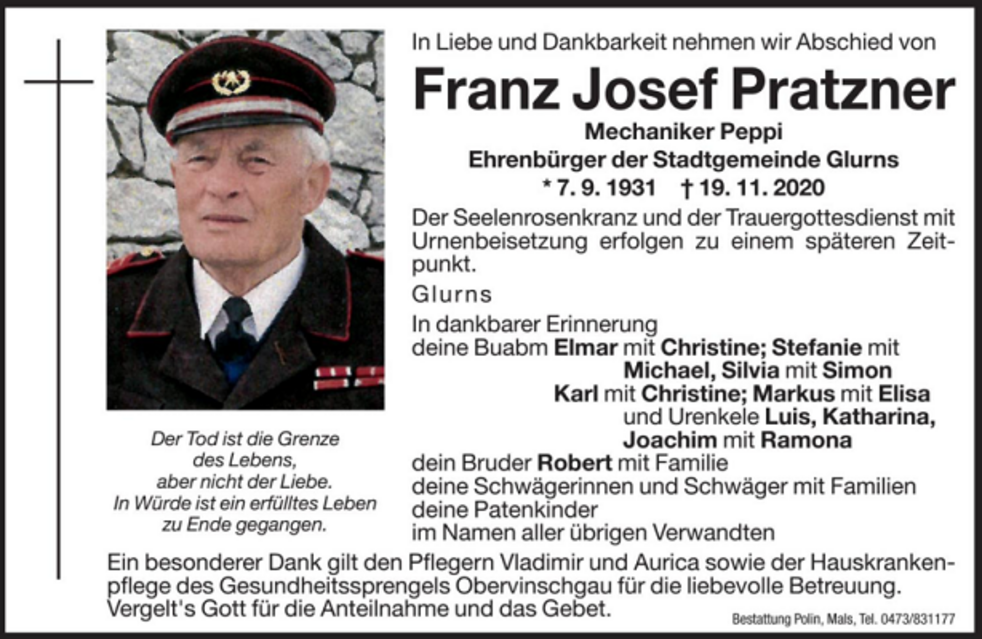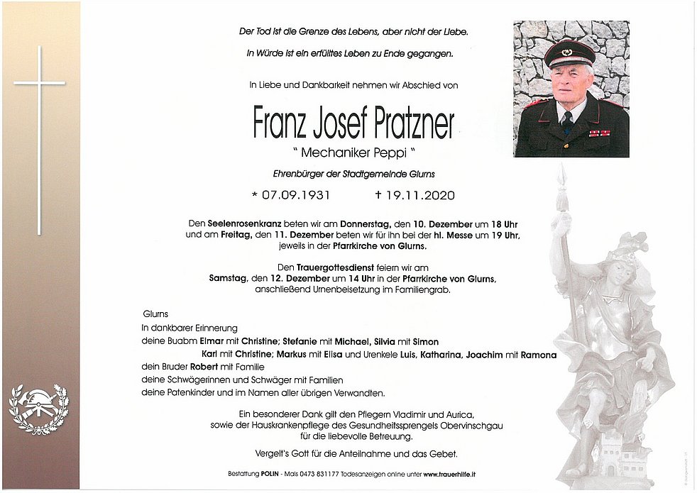 und am Freitag, den 11. Dezember beten wir für ihn bei der hl. Messe um 19 Uhr,
