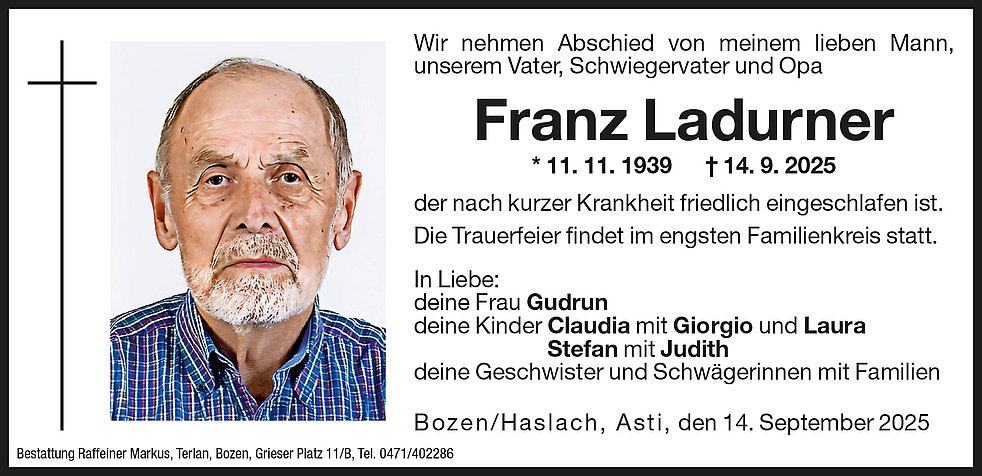 der nach kurzer Krankheit friedlich eingeschlafen ist.