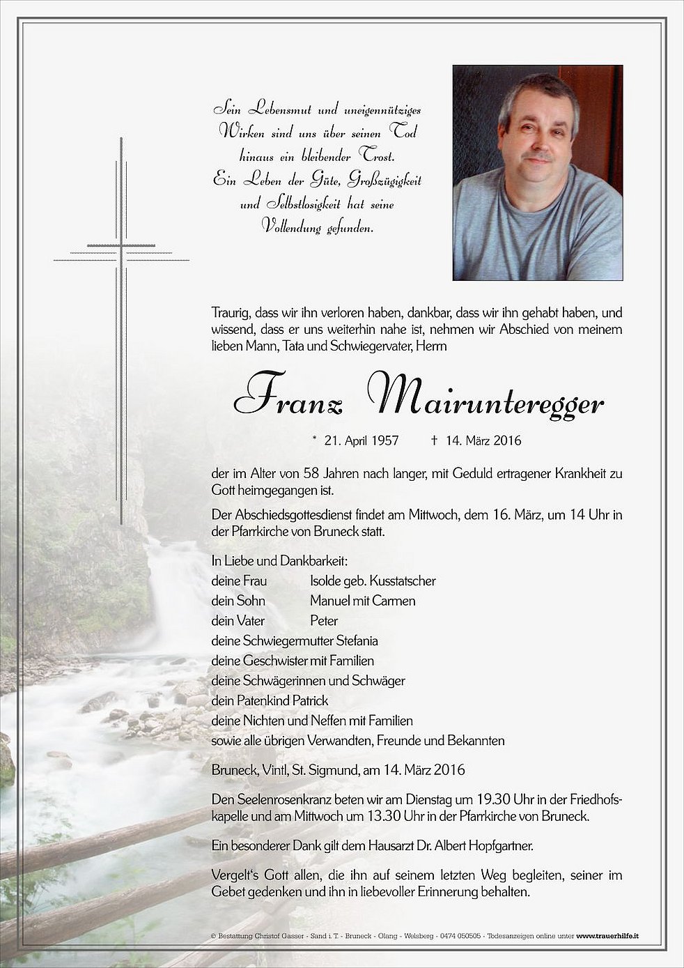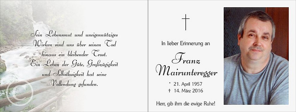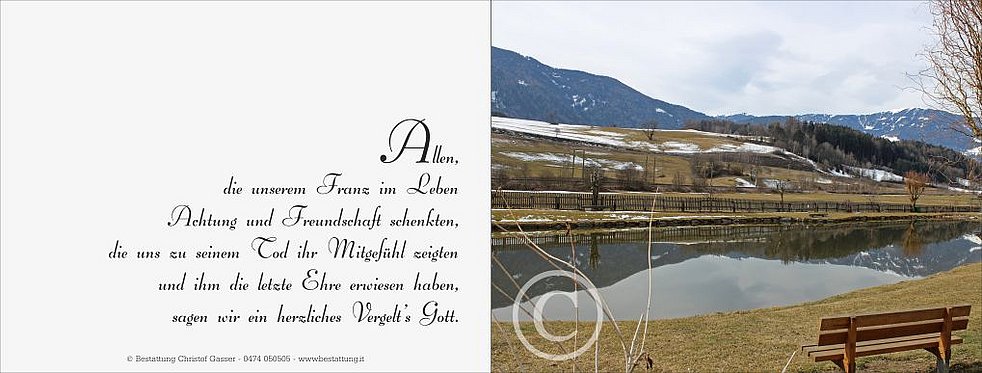 Vergelt‘s Gott allen, die ihn auf seinem letzten Weg begleiten, seiner im Gebet gedenken und ihn in liebevoller Erinnerung behalten.
