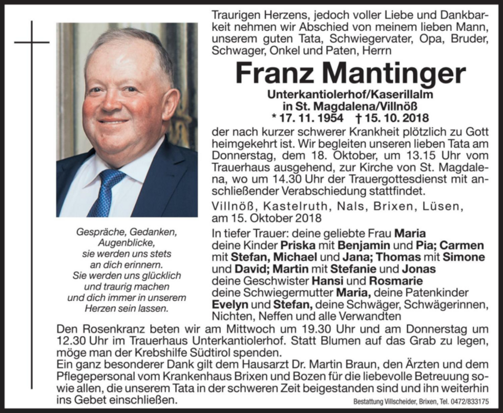 Villnöß, Kastelruth, Nals, Brixen, Lüsen, am 15. Oktober 2018