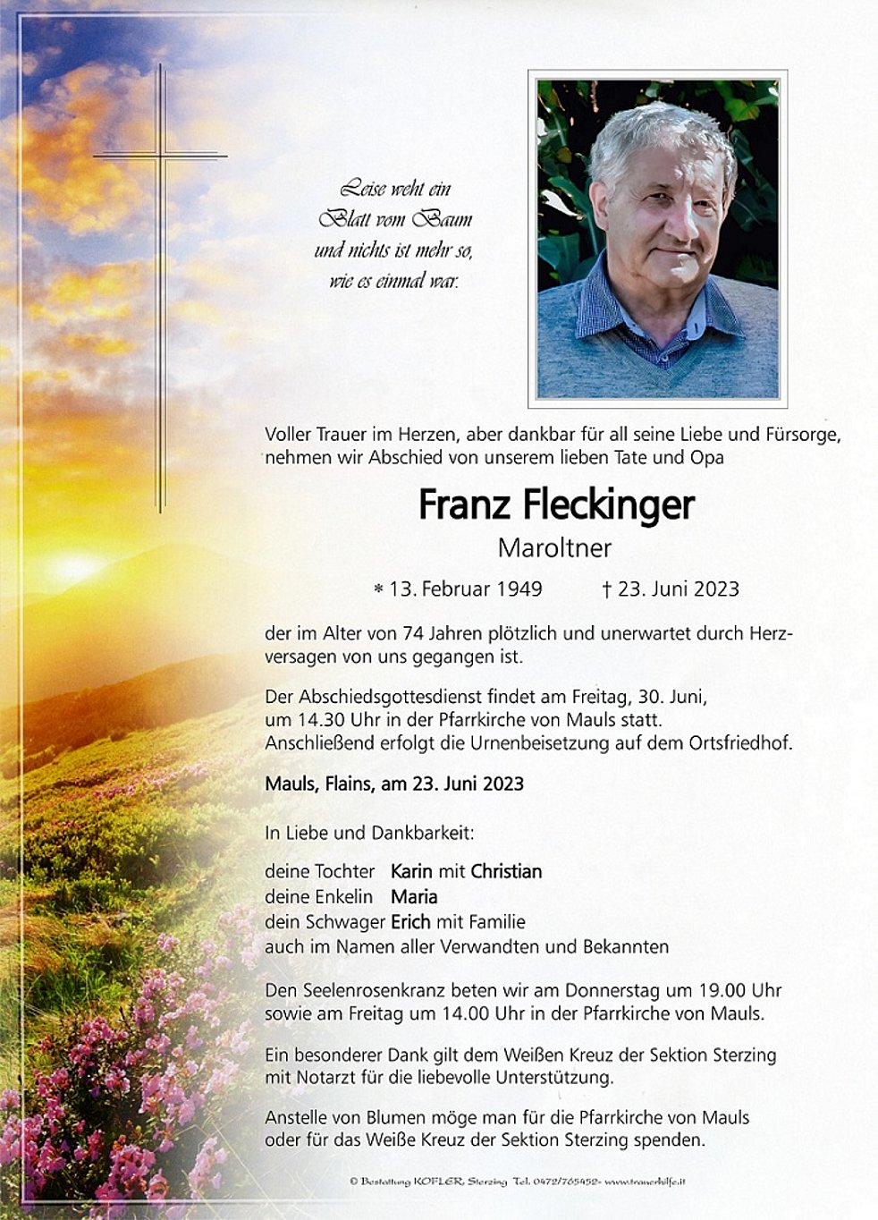 Anstelle von Blumen möge man für die Pfarrkirche von Mauls oder für das Weiße Kreuz der Sektion Sterzing spenden.