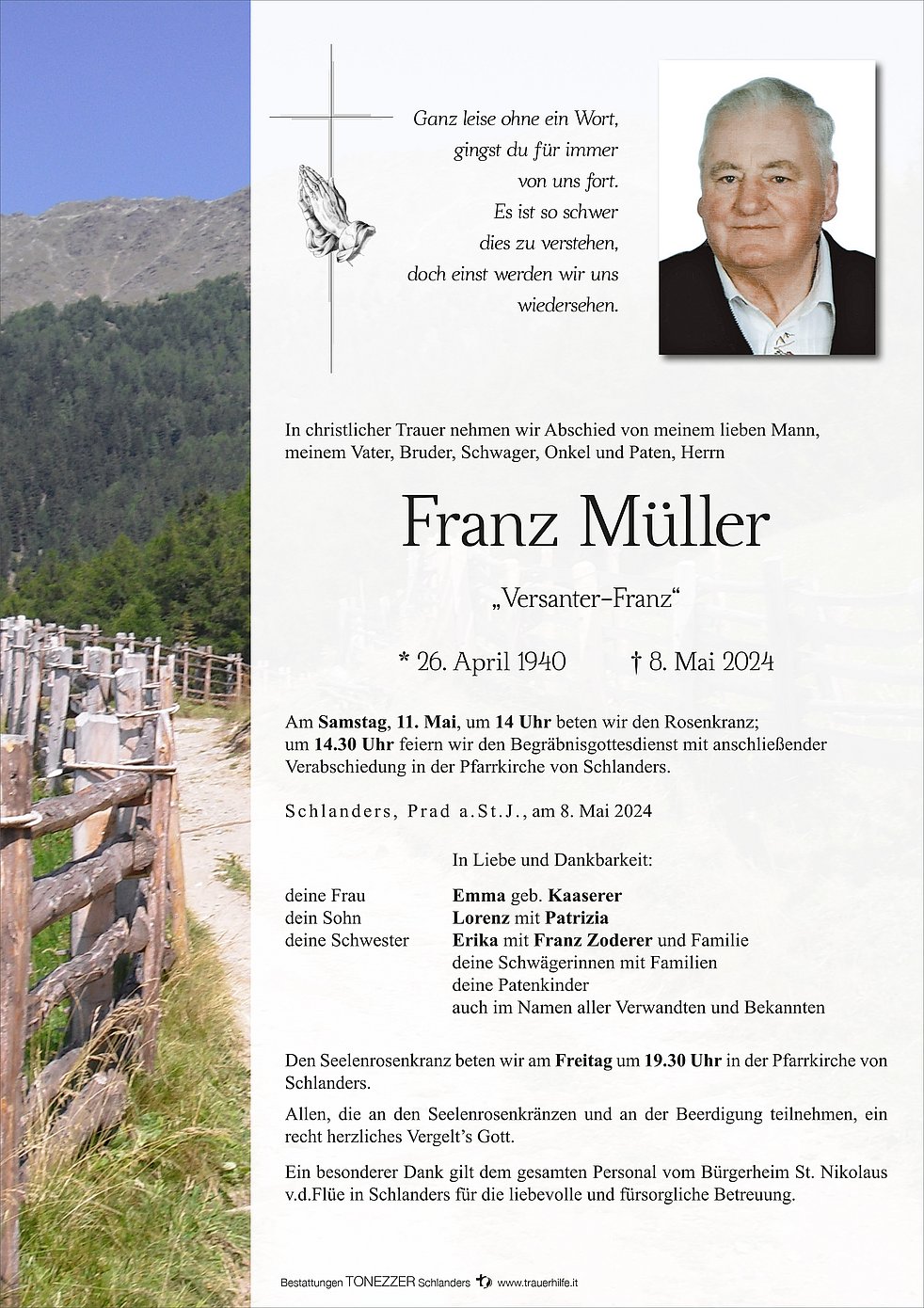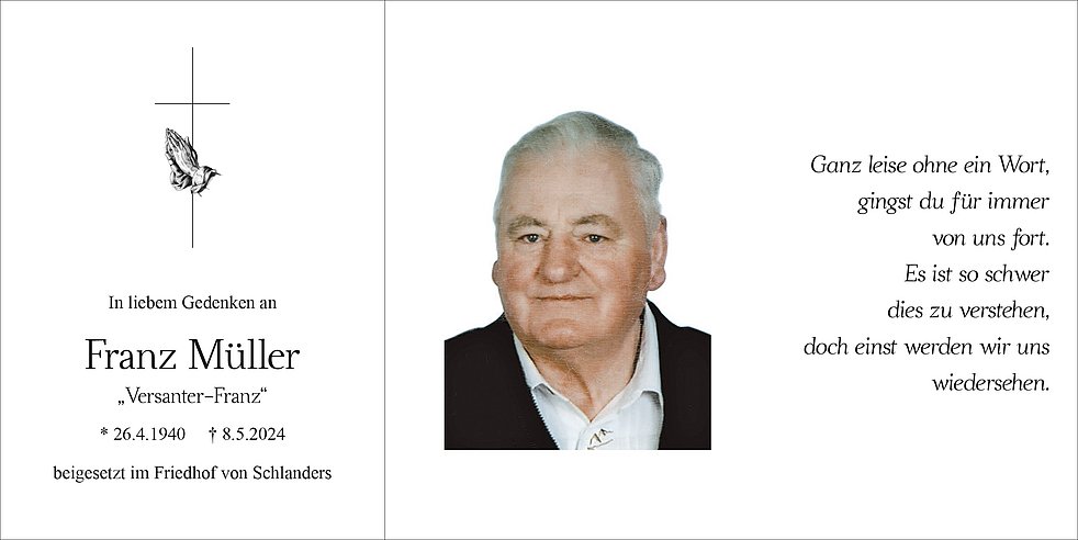 Allen, die an den Seelenrosenkränzen und an der Beerdigung teilnehmen, ein recht herzliches Vergelt’s Gott.