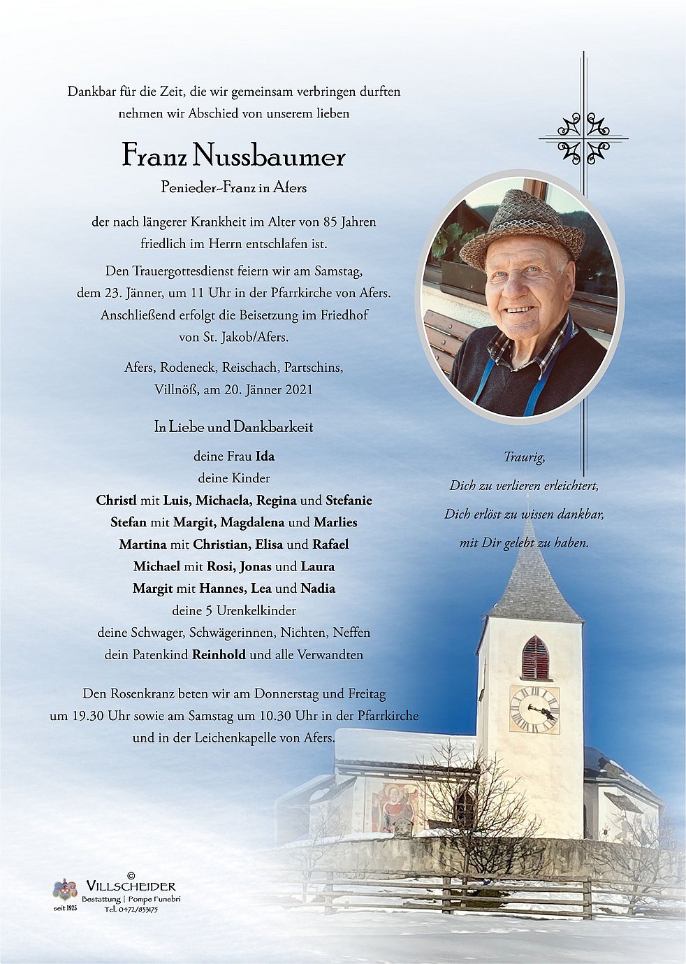 Wir möchten Euch unser aufrichtiges Beileid übermitteln und wünschen ganz viel Kraft für die schwere Zeit! Werde Franz als stets zufriedenen Mensch in Erinnerung behalten!