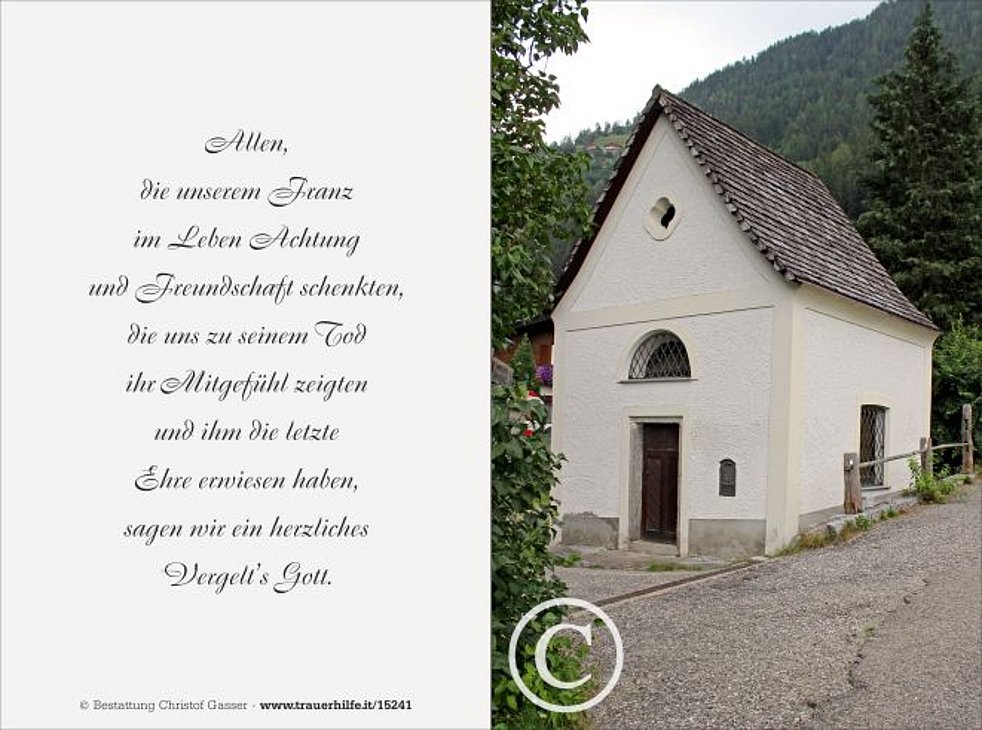 Vergelt‘s Gott allen, die an den Seelenrosenkränzen und an der Beerdigung teilnehmen und ihn in guter Erinnerung behalten.