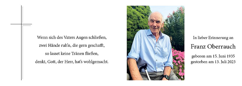 Dankbar für die schöne Zeit, die wir gemeinsam erleben durften, nehmen wir Abschied von meinem lieben Mann, unserem Vati, Schwiegervater, Opa, Bruder, Schwager, Onkel und Paten