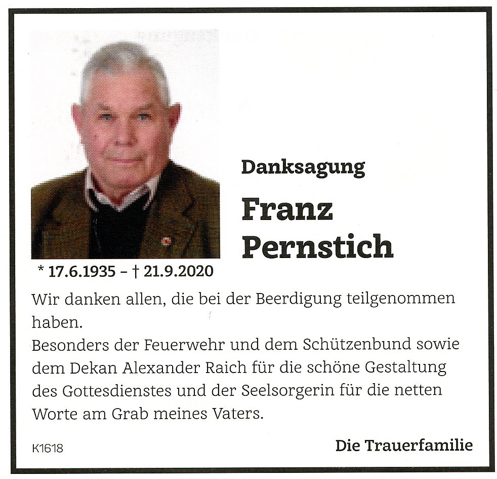 Allen, die am Rosenkranz und an der Beerdigung teilnehmen, im Voraus ein herzliches Vergelt’s Gott.