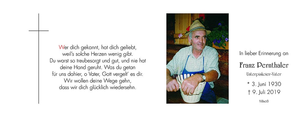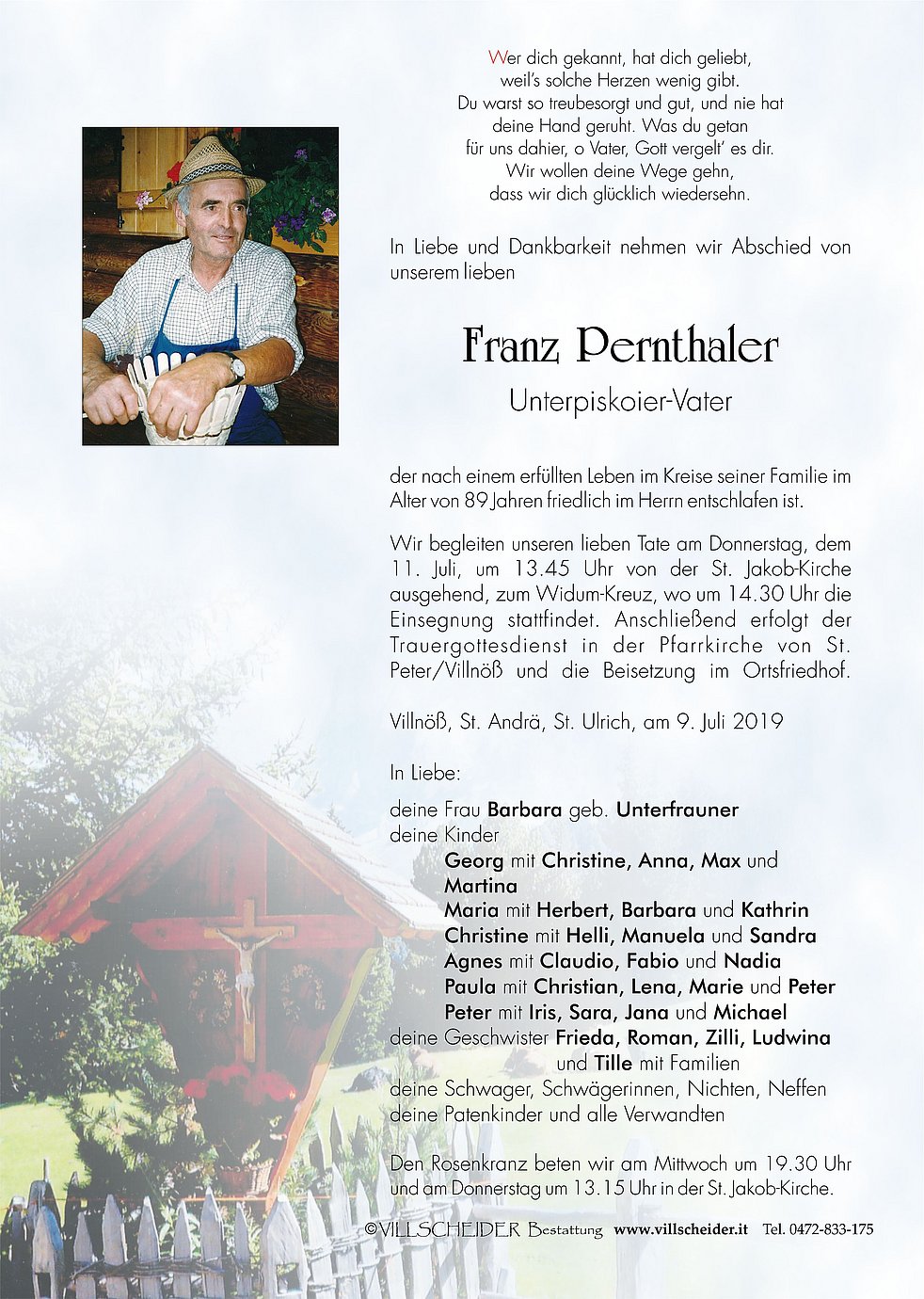 Begräbnisgottesdienst: 11.07. - 14:30 Uhr Villnöss