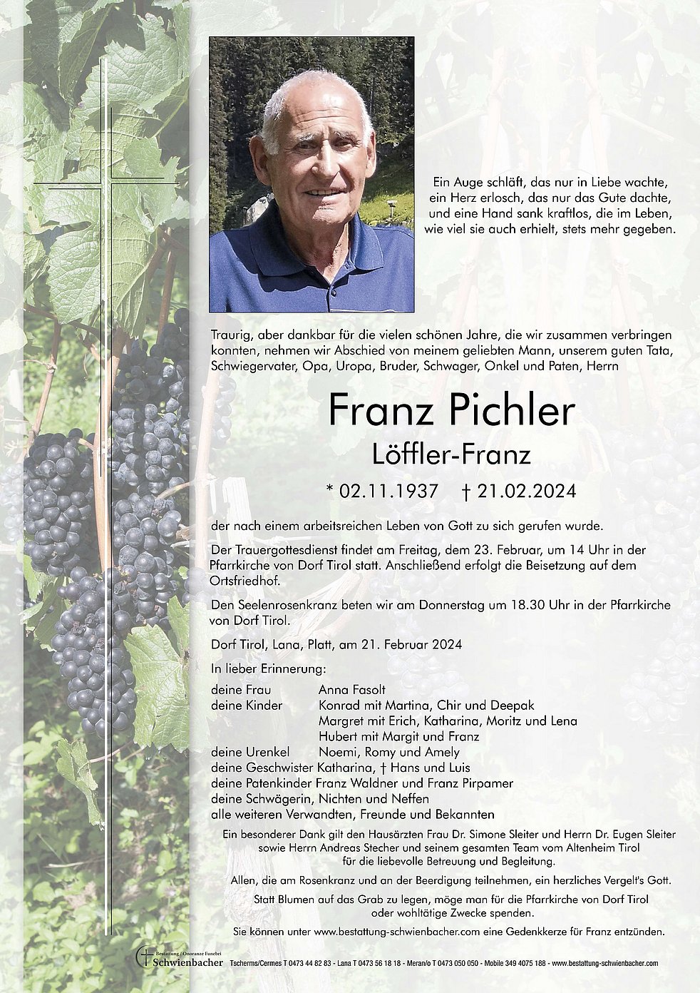 Begräbnisgottesdienst: 23.02. - 14:00 Uhr Dorf Tirol
