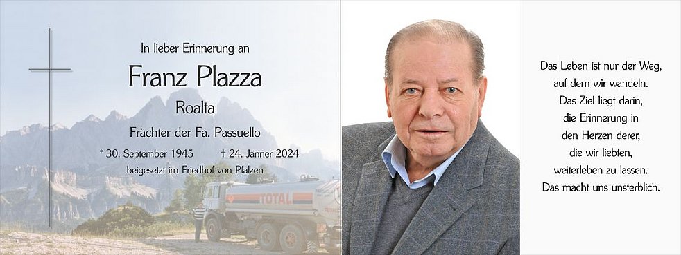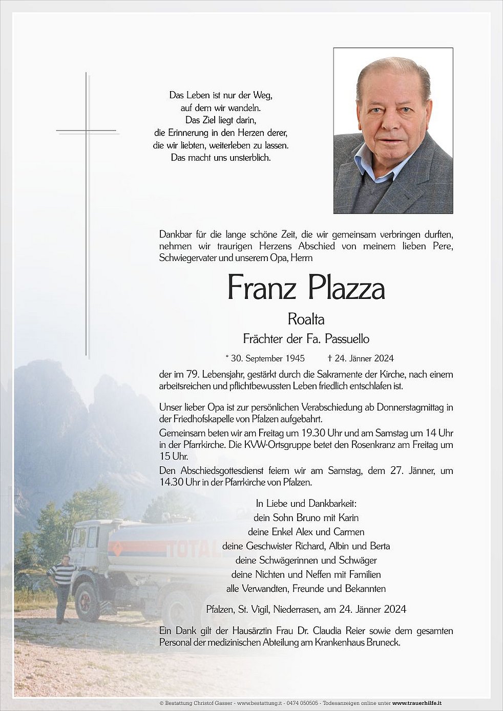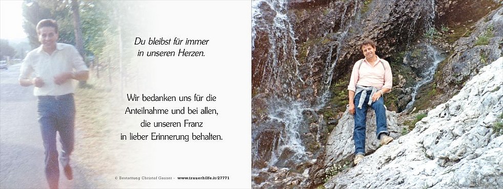 Unser lieber Opa ist zur persönlichen Verabschiedung ab Donnerstagmittag in der Friedhofskapelle von Pfalzen aufgebahrt.