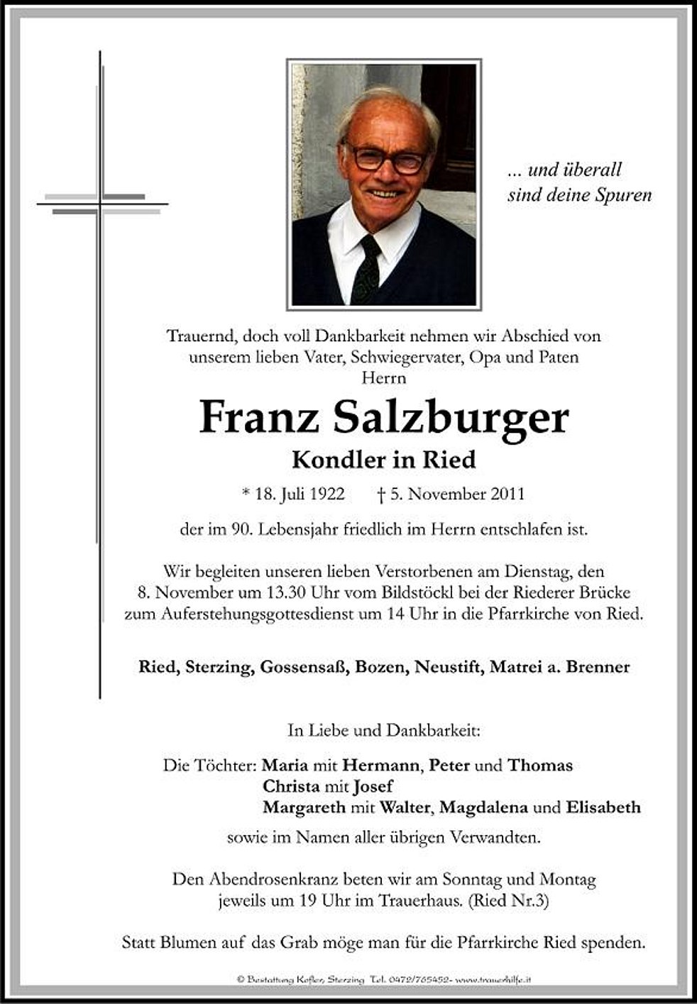 Statt Blumen auf das Grab möge man für die Pfarrkirche Ried spenden.