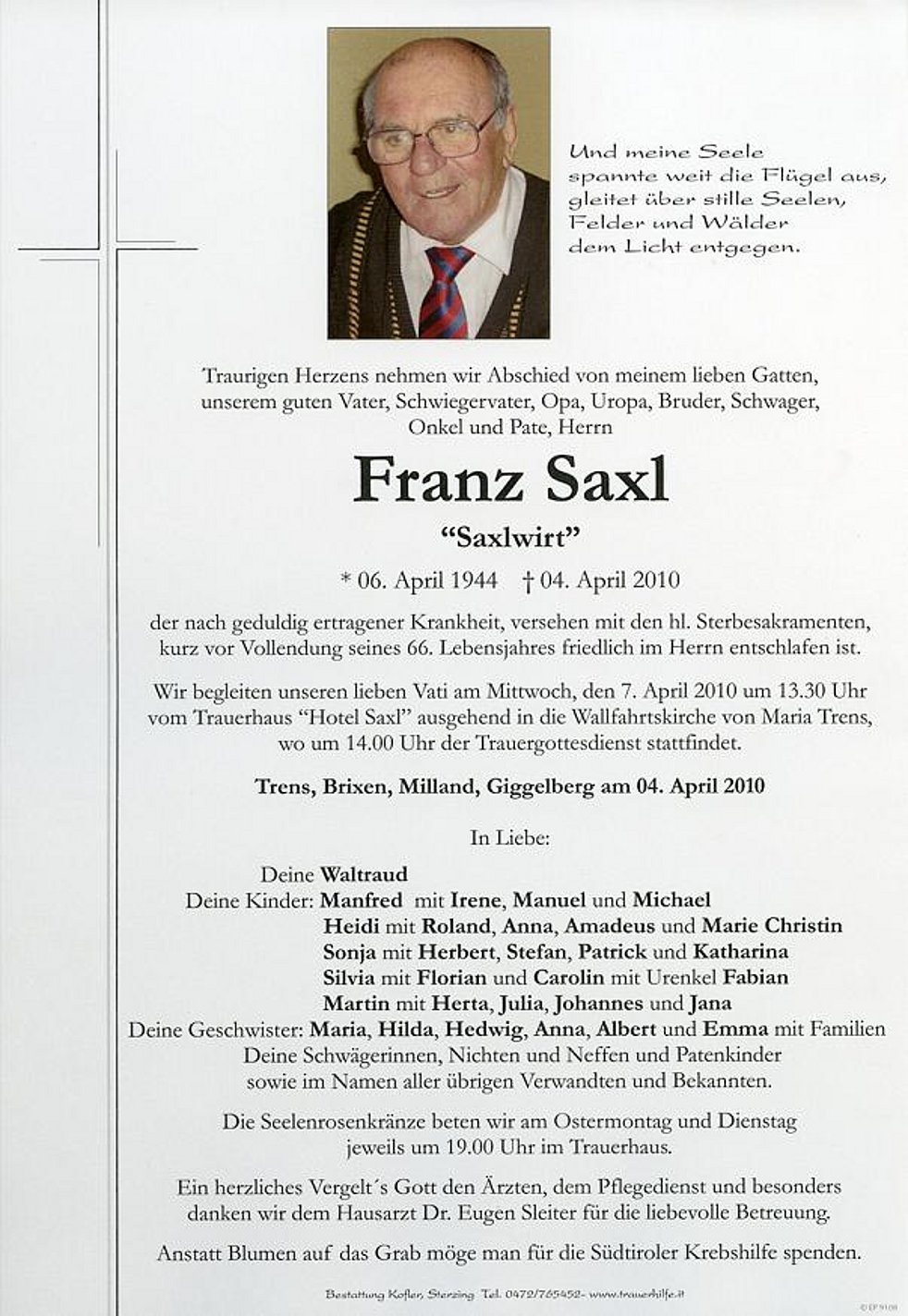 Anstatt Blumen auf das Grab möge man für die Südtiroler Krebshilfe spenden.